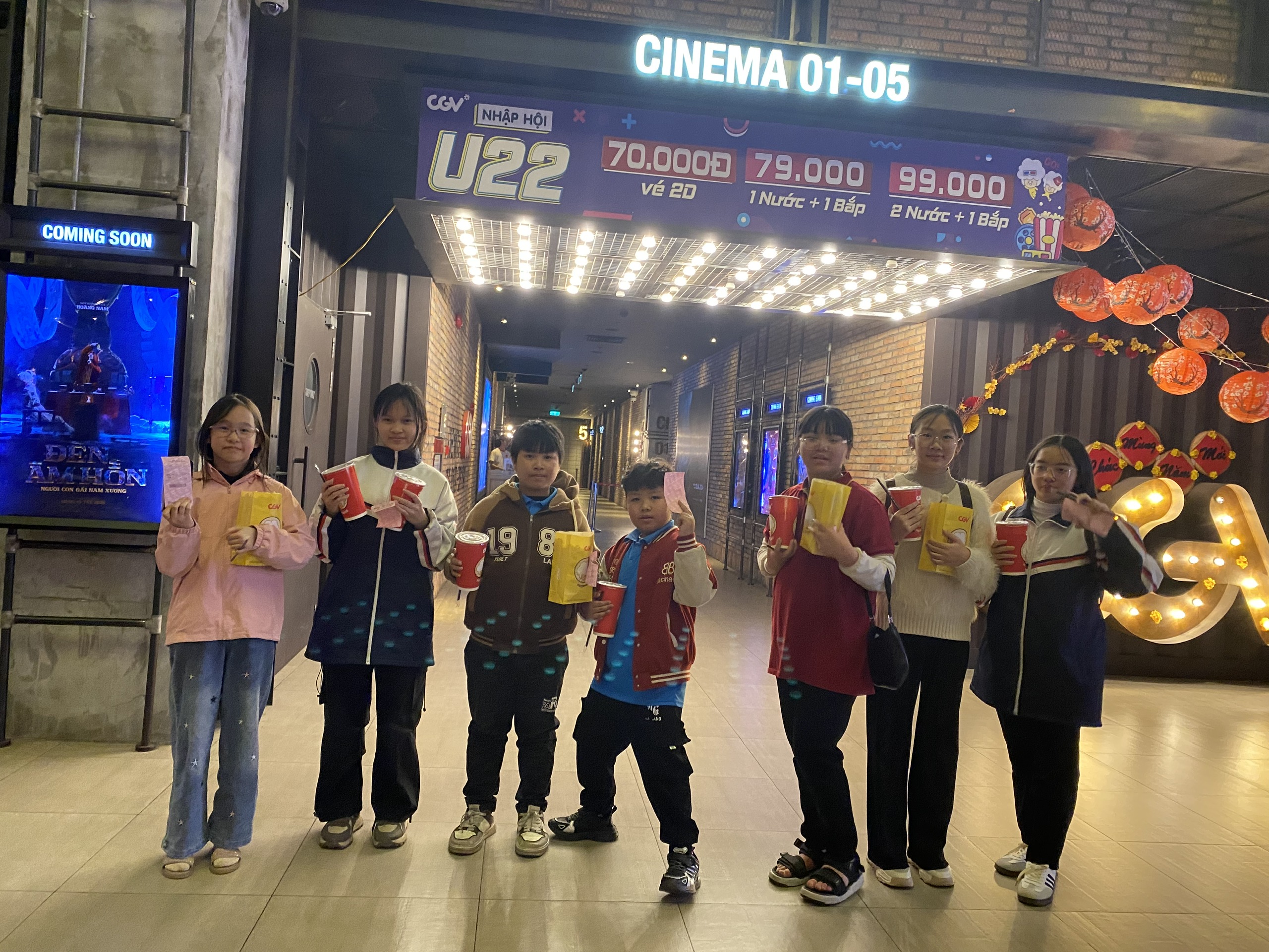 Sau giờ thi căng thẳng, trung tâm Liverpool đã tổ chức một hoạt động thú vị nhằm giúp các em thư giãn và gắn kết với nhau hơn. Các học sinh được trải nghiệm xem phim tại rạp chiếu phim ngay tại Hạ Long. Đây không chỉ là phần thưởng xứng đáng sau những nỗ lực mà còn là dịp để các em tận hưởng khoảnh khắc vui vẻ bên bạn bè. Nhiều bạn tỏ ra vô cùng hào hứng khi lần đầu được tham gia một hoạt động vừa học vừa chơi đầy ý nghĩa như vậy.